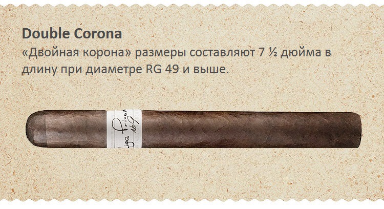 Double Corona – по мнению самих кубинцев является выдающимся форматом. Осилить ее могут только курильщики со стажем. На ее выкуривание уходит не меньше двух с половиной часов. Она курится после ужина и с хорошим алкоголем.