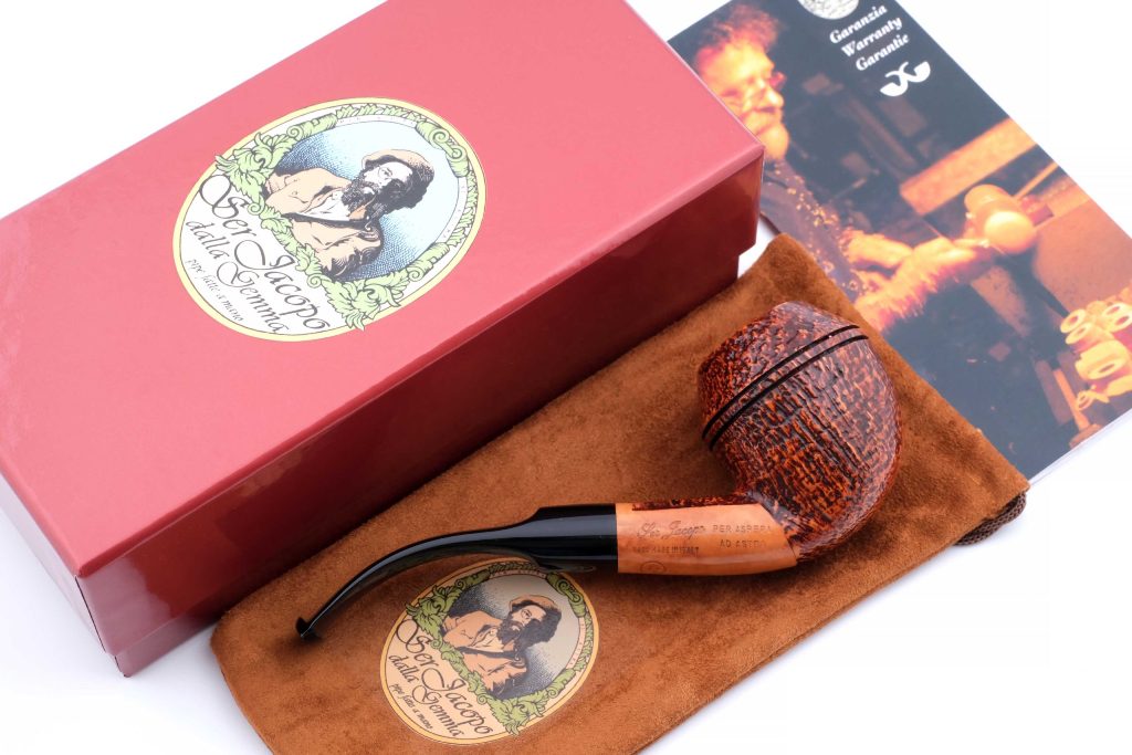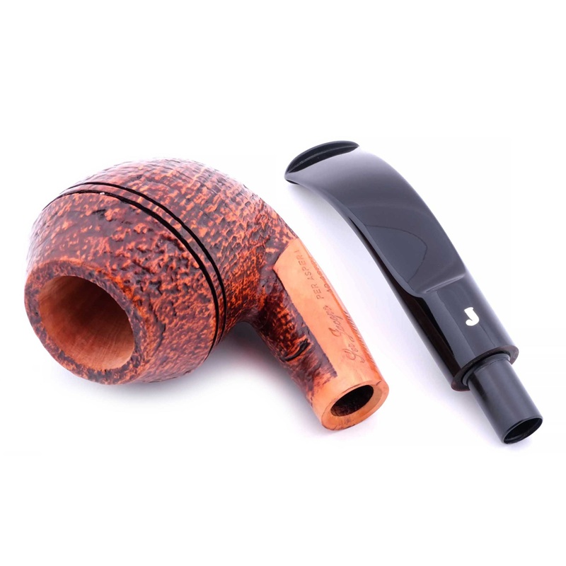 Авторская курительная трубка с отделкой сэндбласт из мастерской Ser Jacopo - эффектное изделие ручной работы с выразительной рельефной поверхностью, подчёркивающей природную структуру бриара.