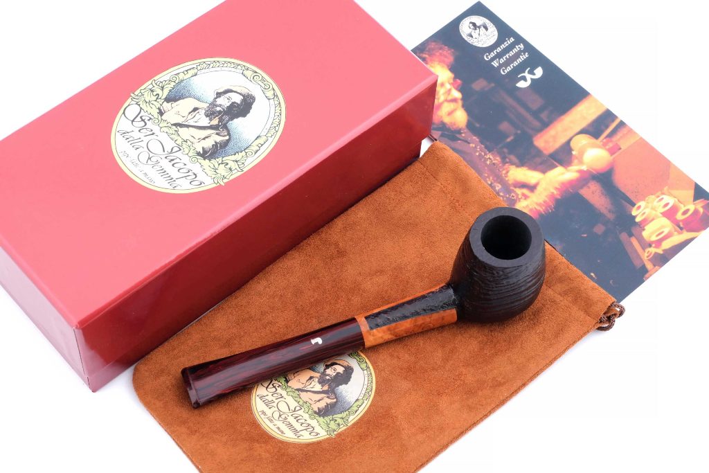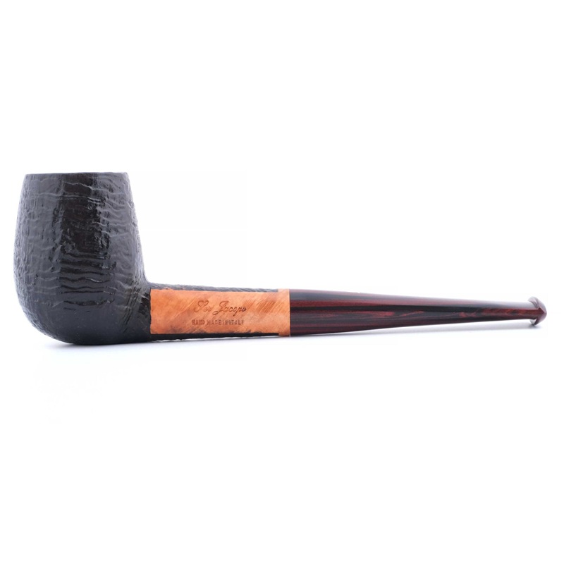 Авторская курительная трубка с отделкой сэндбласт из мастерской Ser Jacopo, выполненная вручную с характерной текстурированной поверхностью, подчёркивающей природную структуру бриара.