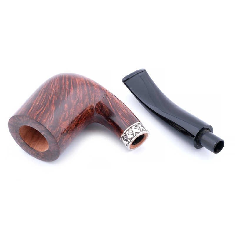 Трубка украшена элегантным кольцом из серебра 925 пробы на чубуке, подчёркивающим её статус и коллекционную ценность.