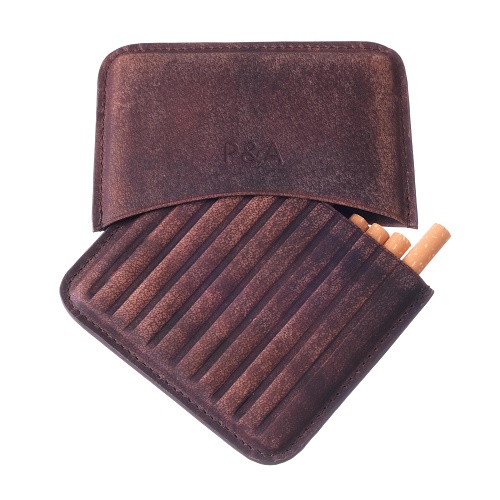 Сигартеница P&A из высококачественной натуральной буйволиной кожи, чрезвычайно прочной и износостойкой, с финишной отделкой «искусственное старение» в винтажном стиле Дикого Запада. Производится итальянской компанией Parenti-Agostinelli из Милана.