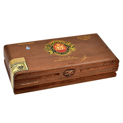 Arturo Fuente - Don Carlos - Eye of the Bull cрученная вручную в Доминиканской Республике, эта насыщенная сигара полной крепости облачена в пикантную красноватую "рубашку" африканского Камеруна, скрывающую связующий лист и начинку из отборного доминиканского табака.Ее фирменная черта - уникальный дизайн: круглая темная вставка из табака, напоминающая мишень или "бычий глаз", благодаря которой сигара получила столь характерное название.Несмотря на свою мощь, курение "Eye of the Bull" поражает удивительной плавностью.Богатый вкусовой профиль раскрывается восхитительными нотами ванили и нежной сливочности, которые элегантно дополняются деликатными, пикантными оттенками.Эта эксклюзивная сигара от "Arturo Fuente" предлагает ценителям концентрированный, изысканный и запоминающийся опыт курения, подчеркнутый безупречным мастерством ручной скрутки.Скрутка: ручная.Формат: Robusto.Производитель: Доминиканская Республика.Покровный лист: Cameroon.Связующий лист: Доминикана.Начинка: Доминикана.Размер: 88.9 x 21.8 мм (RG55).Индивидуальная упаковка: целлофан.Крепость: крепкая.Количество в коробке: 20 шт.Сигара "Arturo Fuente - Don Carlos - The Mans 80th - Eye of the Bull" получила 94 балла по версии журнала "Cigar Aficionado" в 2024 году.