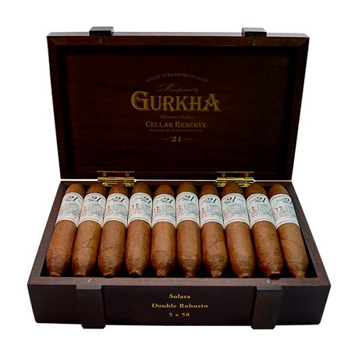 Пятый выпуск сигар Gurkha Cellar Reserve 21 Aged Double Robusto лимитированной серии, с эксклюзивным 21-летним выдержанным табаком. Учитывая невероятный «возраст» табачных листьев, вкус обещает быть фантастически мягким, поистине сливочно-кремовым, с характерным ореховым оттенком. Великолепно сбалансированные элегантные сигары для истинных гурманов!