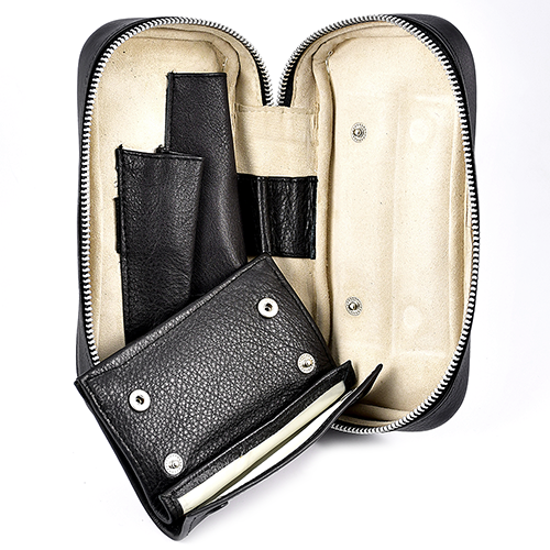 Имеет прорезиненный кисет для табака и отделение под курительные аксессуары.