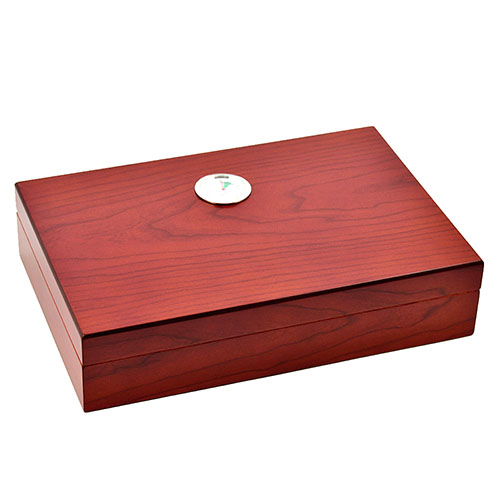 Хьюмидор 09423.Вместительность: 12 сигар;Размеры: 26 см х 22 см х 7 см;Вес 0,7 кг.Материал: Шпон/МДФ/Кедр.Оборудован аналоговым гигрометром и увлажнителем.Страна производcтва: Китай.