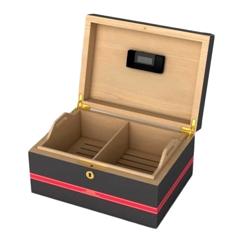 Хьюмидор лакированный с цветами Partagas Series D, черная с красным декором. Вмещает в себя до 50 сигар формата Robusto с вентиляцией между слоями сигар. Статическое увлажнение с 2-х местными увлажнителями на дне Хьюмидора Partagas Series D, также оснащено цифровым гигрометром / термометром, полностью из испанского кедровго покрытии.