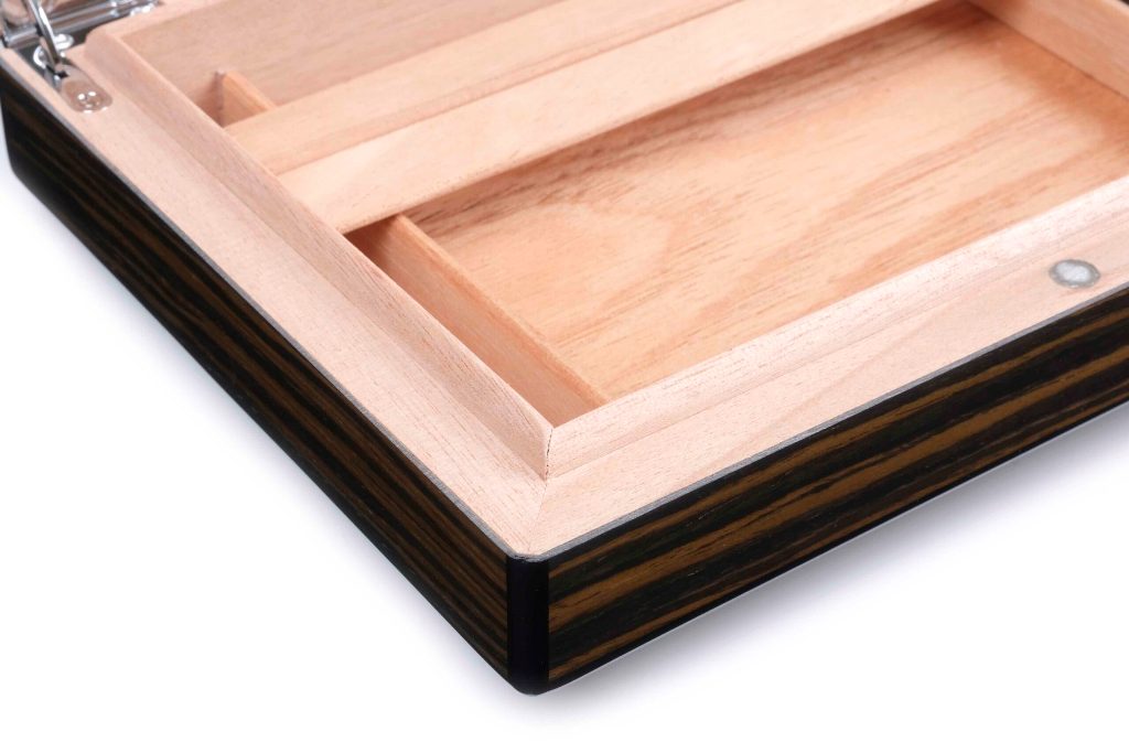 Внутренняя отделка выполнена из высококачественного испанского кедра. Корпус отделан ценным шпоном Эбенового дерева (Ebony) из Экваториальной Африки.