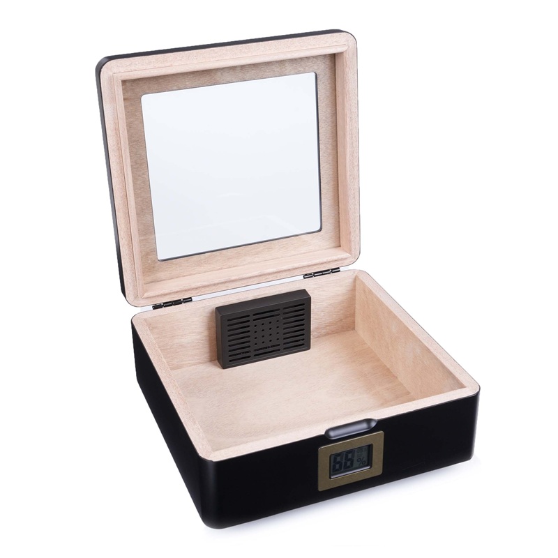 Внутренняя отделка изготовлена из испанского кедра, который поддерживает оптимальный микроклимат и способствует сохранению вкусовых качеств сигар. В комплект входят современный увлажнитель с акриловым полимером, электронный термогигрометр для точного контроля температуры и влажности, а также инструкция по уходу.