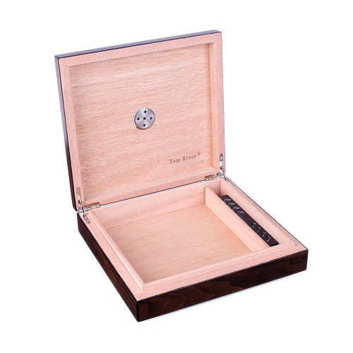 Хьюмидор на 25 сигар тайваньской марки Tom River. Внутренняя отделка выполнена из испанского кедра, в комплекте увлажнитель, гигрометр, инструкция по уходу.