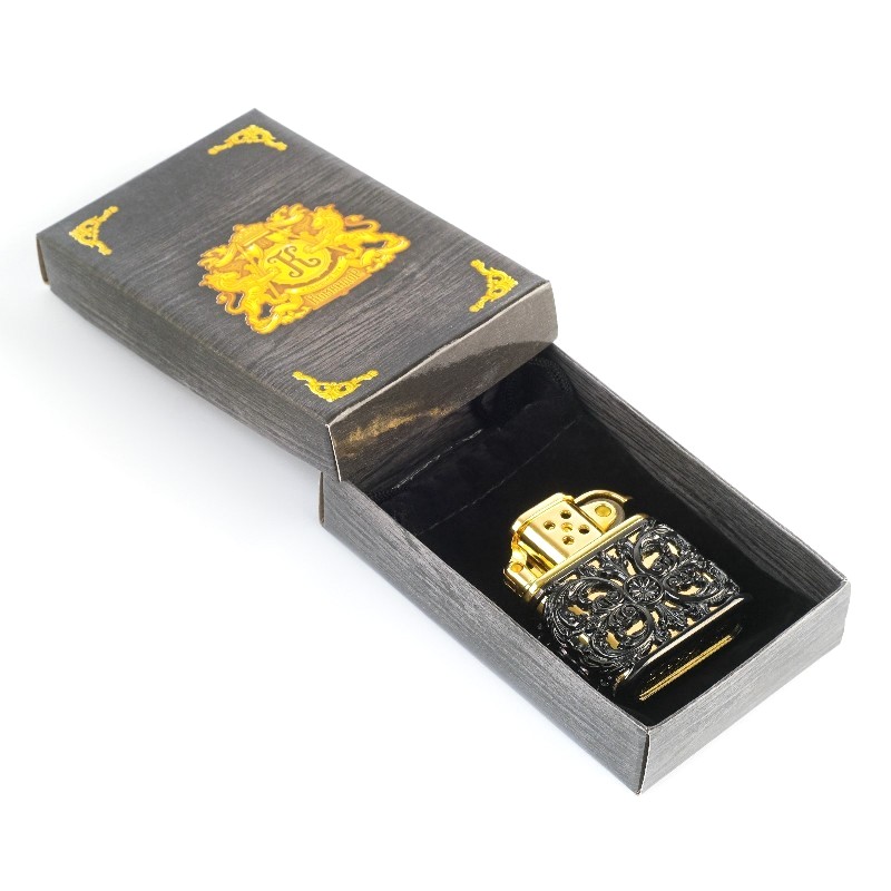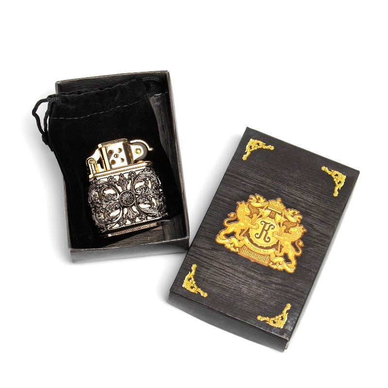 Данная зажигалка-сувенир послужит прекрасным подарком мужу, брату или коллеге на любой праздник - День Рождения, 23 февраля или Новый Год. Легко помещается в ладонь, крышка откидывается ловким движеним пальцев. Размер изделия - 1.5 х 4.5 х 5 см, в комплект входит тканевый мешочек-чехол, в которую помещена непосредственно зажигалка, помещённые в подарочную коробочку. Зажигалка является многоразовой с возможностью быстрой дозаправки, смены кремния и фитиля. Заправляется бензином для зажигалок (продаётся и транспортируется не заправленная).