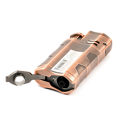 Ветроустойчивая сигарная турбо-зажигалка Vertigo EnvoyПрочная зажигалка с двойным турбопламенем, может использоваться как подставка для сигар, также встроен пробойник для сигар.Крышка защищает форсунки от грязи.Прозрачный резервуар позволяет контролировать количество оставшегося газа.Заправляемая, с регулировкой пламени.Страна производства: Китай.