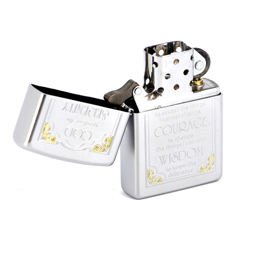 Получите вдохновение от этой зажигалки с покрытием Satin ChromeTM. На корпусе выгравирована молитва о терпении, призывающая нас со смирением принимать всё хорошее и плохое и стараться максимально наслаждаться жизнью.