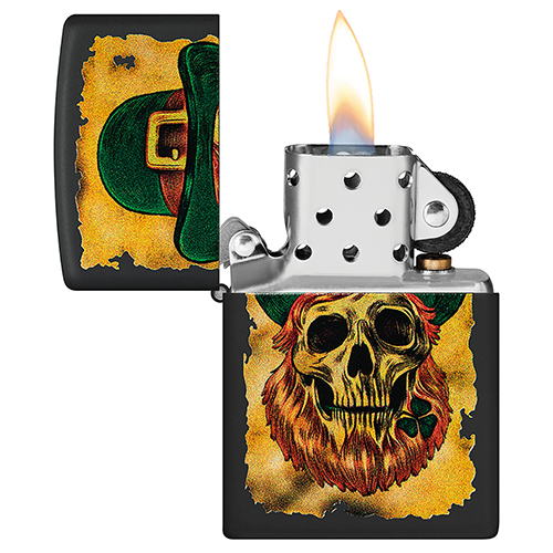 Zippo 46244 Ироничный и запоминающийся сюжет украшает эту классическую зажигалку с матовым чёрным покрытием Black Matte. Усталый лепрекон в традиционной шляпе-котелке изображён на фоне обугленной карты сокровищ, создавая атмосферу приключений с лёгким юмором. Яркое цветное изображение эффектно контрастирует с тёмным корпусом, придавая модели характер и индивидуальность.