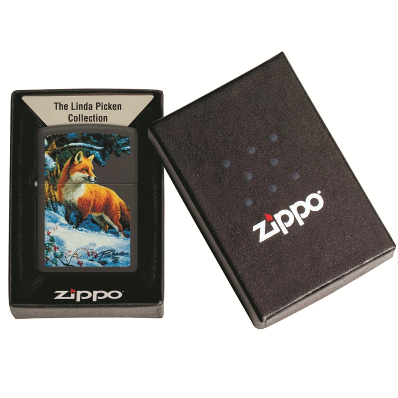 Безошибочный стиль американской художницы дикой природы Линды Пикен воспевает сущность больших и малых существ в их естественной среде. Ее отмеченная наградами работа изображает величие животного мира, что принесло ей широкую известность как среди энтузиастов природы, так и среди лидеров охраны природы. Мы воспроизвели культовое изображение лисы в снегу в потрясающем цветном изображении на этой гладкой зажигалке Black Matte.Поставляется в подарочной коробке. Для оптимальной работы рекомендуется использовать только оригинальное топливо Zippo.• Настоящая ветроустойчивая зажигалка Zippo с характерным фирменным "щелчком"• Полностью металлическая конструкция и абсолютная ветроустойчивость• Возможность заправки позволяет пользоваться зажигалкой всю жизнь• Для оптимальной работы рекомендуется использовать оригинальные кремни, фитили и высококачественное топливо Zippo• Сделано в США; пожизненная гарантия (От производителя)*